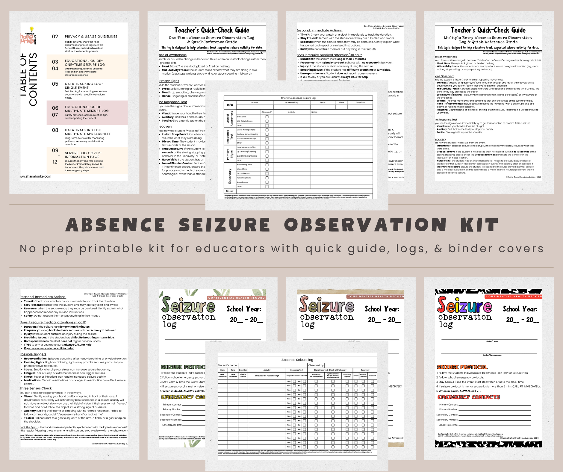 Absence seizures can be incredibly difficult to spot in a busy classroom—often looking exactly like daydreaming or "checking out." This Seizure Observation Log & Guide is designed to take the guesswork out of data collection for teachers, paraeducators, and school nurses.